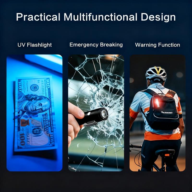 🔦Pocket Rechargeable EDC Flashlight: Mini Keychain Light with Fire Starter & Window Breaker